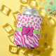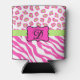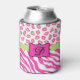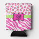 Hot Pink White zebra Leopard Skin Monogram Initial Can Cooler