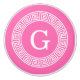 Hot Pink and White Greek Key Round Framed Initial Monogram