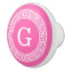 Hot Pink Wht Greek Key Rnd Frame Initial Monogram Ceramic Knob
