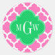 Hot Pink Wt Moroccan #5 Emerald 3 Initial Monogram Classic Round Sticker