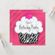 Invitation Hot rose Zebra Girls Cupcake fête d'anniversaire