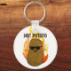 Cute brown cartoon potato wearing dark sunglasses surrounded by flames with the words "Hot Potato" above his head. The lettering are a template that cane be left as it is or used as a template to personalize this design.