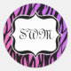 Hot Purple/Pink Zebra Stripes Monogram Classic Round Sticker