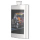 The product is a good size and came exactly as it was pictured. The lid is not attached to the flask, which could be dangerous on drunken nights... The print came out surprisingly well and looks very sharp. Would definitely recommend.