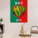 Photo of various sorts of red, yellow and green hot chili peppers forming a heart on green and red background, representing Mexican flag with editable text 'HOT' and 'spicy' , perfect for any occasion celebrating Hispanic tradition and heritage.