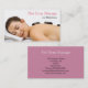 Photo of a beautiful young woman having a hot stone massage. Business card template for massage therapy company.