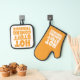 No more boring oven mitts for you! This oven mitt and pot holder set adds a humourous touch to any kitchen. The playful design puts a smile on your face while also shielding your hands from burns. Lets you safely reach into hot ovens or grab sizzling pots off the stove. Give your kitchen personality and protection with the Hot Stuff Coming Through oven mitt and pot holder - a must-have for hot cooks with a sense of humour!