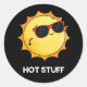 Hot Stuff Funny Sun Pun Dark BG Classic Round Sticker