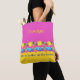 This stylised pattern on a shoulder tote bag has a frieze along the bottom celebrating beach life, with sunshine, palm trees, blue sea and golden sand. You can personalize it with your name. The artwork is an original, unique, hand drawn stylised drawing, digitally coloured.