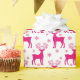 Hot White & Pink Winter Christmas Reindeer Wrapping Paper