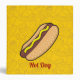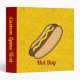 Cartoon illustration of hotdog. Junk food outline icons yellow pattern background. Custom text.