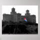 Hotel Nacional de Cuba , Havana, Cuba in black and white, with the Cuban flag in colour.