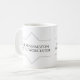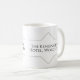 Hotel mug in black, grey and white. Stylish white mug with name of hotel in a clean-cut type style with minimal decoration. Change the wording to replace the example wording with your own hotel name choice.