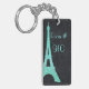 Hôtel chic noir damassé, porte - clé de station sur le thème de Paris, avec des graphismes d'une parties scintillant d'aqua qui a l'air d'une tour Eiffel. Personnalisez le texte couleur aqua pour répondre à vos besoins.