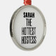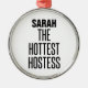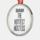 This custom ornament featuring the quote "<NAME HERE> The Hottest Hostess" is perfect for any hot hostess.