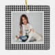 A classic and festive black and white houndstooth pattern frames a single square photo in this simple personalized Christmas ornament design. A great way to commemorate a favourite family photo or event for the year, this ornament makes a perfect gift for parents, grandparents and more. The back features a matching houndstooth pattern with room for custom text and a year.