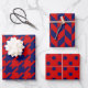 Houndstooth, Herringbone, Dot DIY Colours Red Blue Wrapping Paper Sheet