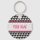 A keychain featuring a background of black houndstooth. Pink trim and text. Personalize with your name over sheer centre section.
