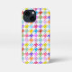 Houndstooth style surface pattern design in a bright mix of colours on a white background.