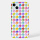 Houndstooth style surface pattern design in a bright mix of colours on a white background.