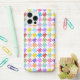 Houndstooth style surface pattern design in a bright mix of colours on a white background.