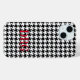 Black and white Houndstooth pattern Case-Mate Apple iPhone 15 case. Personalize with custom name initials.
