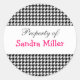 Black and white houndstooth personalized sticker, perfect for labelling books and school supplies!