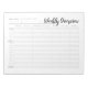 Stay on top of your schedule with this minimalist weekly planner pad, designed for maximum clarity and productivity. The clean white layout features a bold “Weekly Overview” header in modern script, with space to note your week number and top priority for the week. Each day of the week is organized in columns with hourly time slots from 6:00 am to midnight, making it easy to plan appointments, tasks, and routines. Subtle grey lines and simple black text keep your plans easy to read and uncluttered. Perfect for students, professionals, or anyone who values efficient, stylish organization.