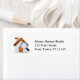 Address label with white house and magnifying glass. Possible concept for real estate or home inspection businesses.