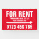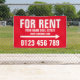Eye catching House for rent real estate banner sign with arrow. Create your own realty company road signage for open house, office suite sale, house viewing, foreclosure, land for sale, properties for lease, sold realestate, home for sale by owner etc. Personalizable template with modern typography. Turn arrow in left or right direction or leave out / delete. Double sided optional. Customizable background colour. ie red and white. Personalize with custom agency / property / broker name and phone number. Include your website address too. Change the quantity to get the cheapest price per sign. Available in small medium and large (extra big) size.