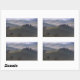 Rectangular photo sticker with a farmhouse in the morning fog at the break of dawn in Tuscany between the rolling hills of the Val d’Orcia valley between Pienza and San Quirico d’Orcia in Italy.
