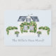 House Moving Announcement Postcard. This cute moving announcement postcard features a hand-painted watercolor house with peach and pink flowers. The back includes text that can easily be personalized.