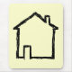 A house symbol in black. A black line illustration. This black house symbol is on a light yellow / cream colour.