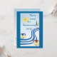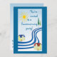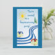 This invitation will inform everyone you know that you have moved and have a new address and they are invited to a housewarming party! The design is a simple abstract with two houses on the banks of a lazy river with the yellow bright sun shining down from a lovely blue sky and green evergreen trees along the banks. Another house is on the reverse. Customize all text to fit your individual situation.