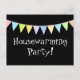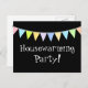 Housewarming party postcards for new home. Cute party flags moving postcards | We've moved!. Custom move text; We have moved! Add your new change of address on the back. Modern moving cards for new home.