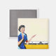 Funny image of a housewife proudly displaying her washer and dryer. Bright retro colours.