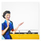 Funny image of a housewife proudly displaying her washer and dryer. Bright retro colours.