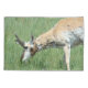 Pronghorn Antelope Buck pâturage Pillowcase. Heureux d'être grignotant sur des verts printaniers frais et luxuriants, ce buck d'antilope de prérghorn a l'air un peu brumeux maintenant, mais va bientôt jeter sa fourrure d'hiver pour un léger manteau d'été.
