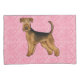 L'illustration originale de Destei d'un adorable chien de race Airedale Terrier, de couleur arrière - plan rose, avec un motif de formes de coeur.