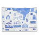 Une aquarelle bleue et blanche du village d'Oia sur l'île grecque de Santorin.