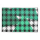 Cette taie d'oreiller a un design moderne du milieu du siècle de diamants noirs solides à l'intérieur des contours en losange noir avec des triangles dans les nuances de vert de mer sous eux, le tout sur un champ de blanc.