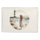 Une jeune femme gracieuse, vêtue d'une robe blanche qui coule le long du rivage sablonneux, son casquette du soleil penche contre la brise en contemplant un phare rayé debout contre les vagues. Des herbes douces encadrent l'avant-plan tandis que des oiseaux marins et un voilier dérivent à travers l'horizon, ajoutant un sentiment de mouvement calme au paysage côtier. La douce aquarelle mêle romantisme et sérénité, créant une scène balnéaire intemporelle d'inspiration cottagecore, à la fois nostalgique et rêveuse. L'IA a généré des oeuvres d'art.
