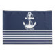 Un élégant coque de coussin décoratif présente des rayures bleues et blanches de marine avec une illustration du vecteur d'ancrage blanc sur un arrière - plan bleu que vous pouvez facilement changer de couleur. Objets correspondants disponibles dans notre magasin.