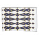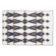 Cette taie d'oreiller a un design art déco de triangles et de diamants qui ressemblent à des corps en bleu et or.