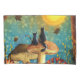 Image mignonne de deux chats assis au-dessus d'un champignon géant dans une forêt remplie de champignons qui observent les feuilles d'automne tomber contre le soleil et le ciel bleu pour créer un merveilleux panorama de l'histoire. .