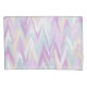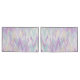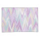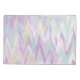 Un chevron abstrait dans une palette violette, turquoise, ivoire et blanche.