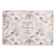Joli et mignon motif de Noël rose dans un style shabby chic avec des chaussures de patinage rose, pain d'épices maison de Noël, de mignons bonhomme de neige en cônes rose, rose et bleu, une tendre boule d'ornement d'arbre de Noël rose et un cadeau de Noël chic et rétro shabby. Personnalisez en changeant le texte ou la personnaliser pour ajouter votre propre touche.
