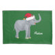 Ce magnifique oreiller d'éléphant de Noël présente un bel éléphant souriant portant un chapeau de Père Noël rouge avec un tronc surélevé. Cette jolie literie personnalisée est décorée d'un charmant arrière - plan de vacances vert. Personnalisez avec votre propre texte en bas pour un cadeau élégant.
