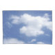 White fluffy clouds are scattered across a bright blue sky. The image conveys a sense of peace and openness.