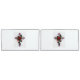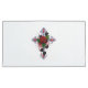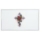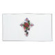Croix d'argent avec une rose rouge et des feuilles noirs sur un arrière - plan blanc.